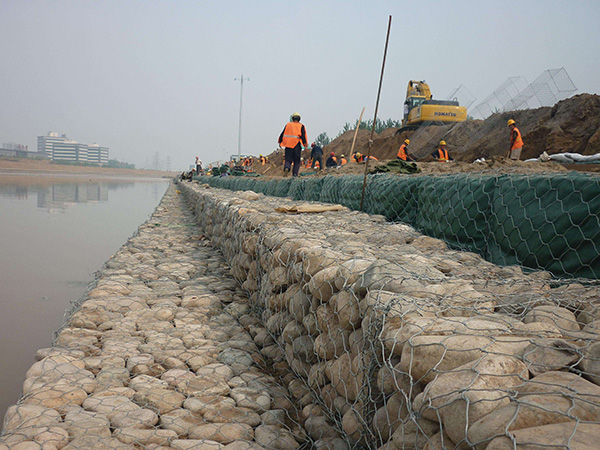 石籠網由高抗腐蝕、高強度、具有延展性的低碳鋼絲或者包覆PVC的以上鋼絲使用機械編織而成,使用該網制作而成的箱型結構就是石籠網箱。根據ASTM和EN標準,所使用的低碳鋼絲直徑根據工程設計要求而不同。一般介于2.0-4.0mm之間,石籠網鋼絲的抗拉強度不少于38kg/m2,金屬鍍層重量一般高于245g/m2,石籠網片的邊緣線直徑一般要大于網線直徑。其雙線絞合部分的長度不得小于50mm.以保證絞合部分鋼絲的金屬鍍層和PVC鍍層不受破壞。